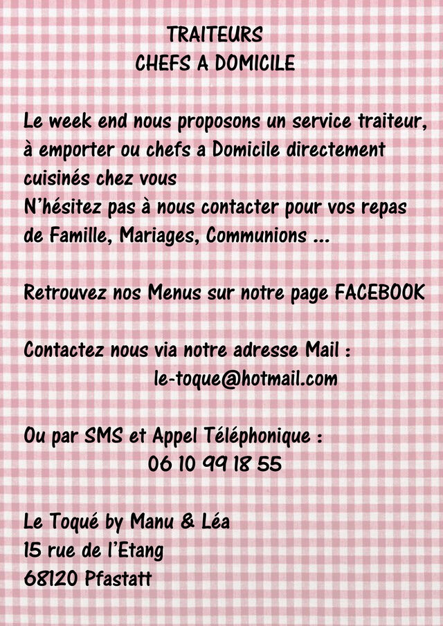 N'hésitez pas à nous contacter par mail ou par téléphone pour vos événements familiaux ou d'entreprise, vos anniversaires ou vos réunions professionnelles.