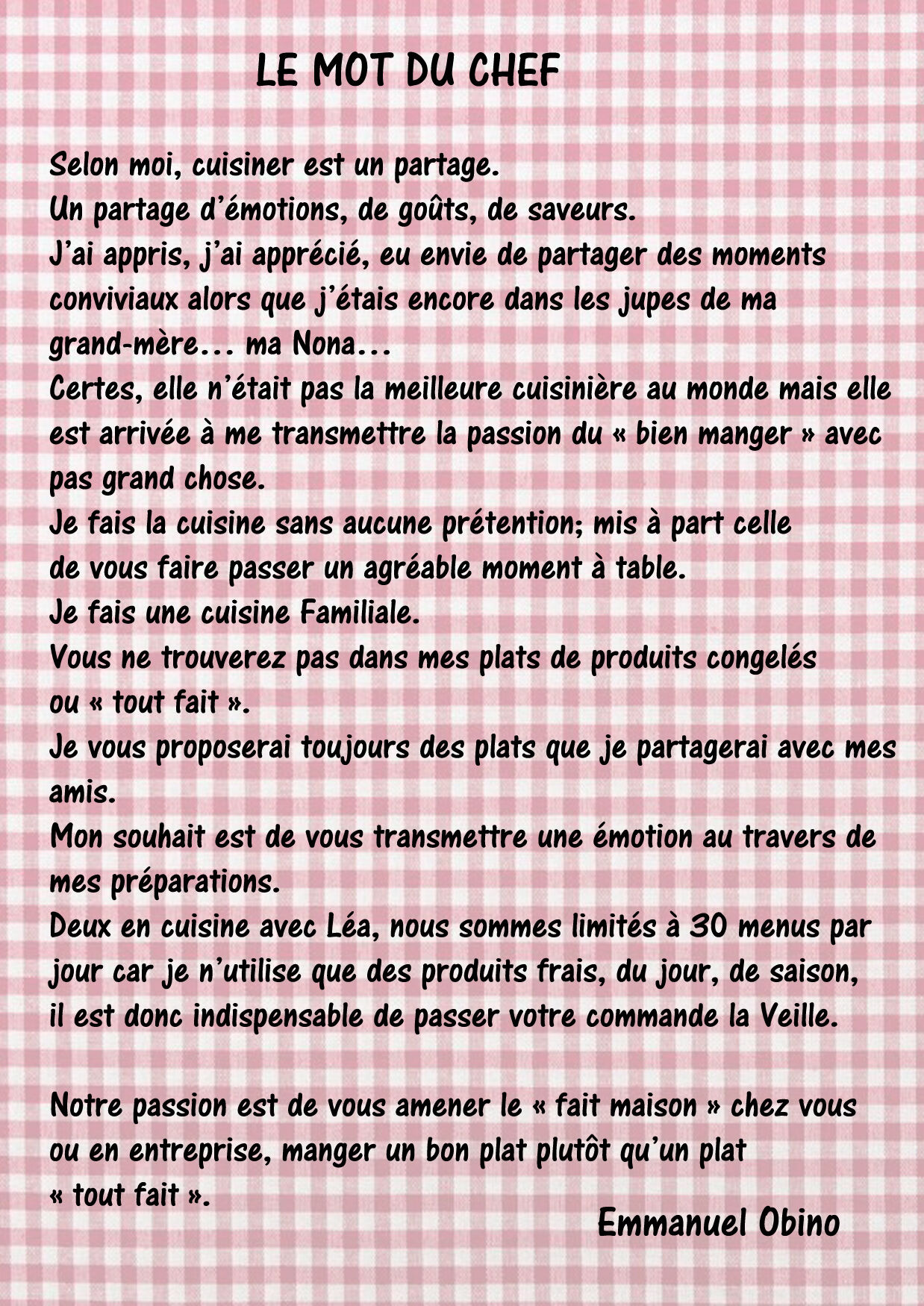 Manu & Léa vous proposent toutes les semaines des menus à base de produits frais, et fait maison.